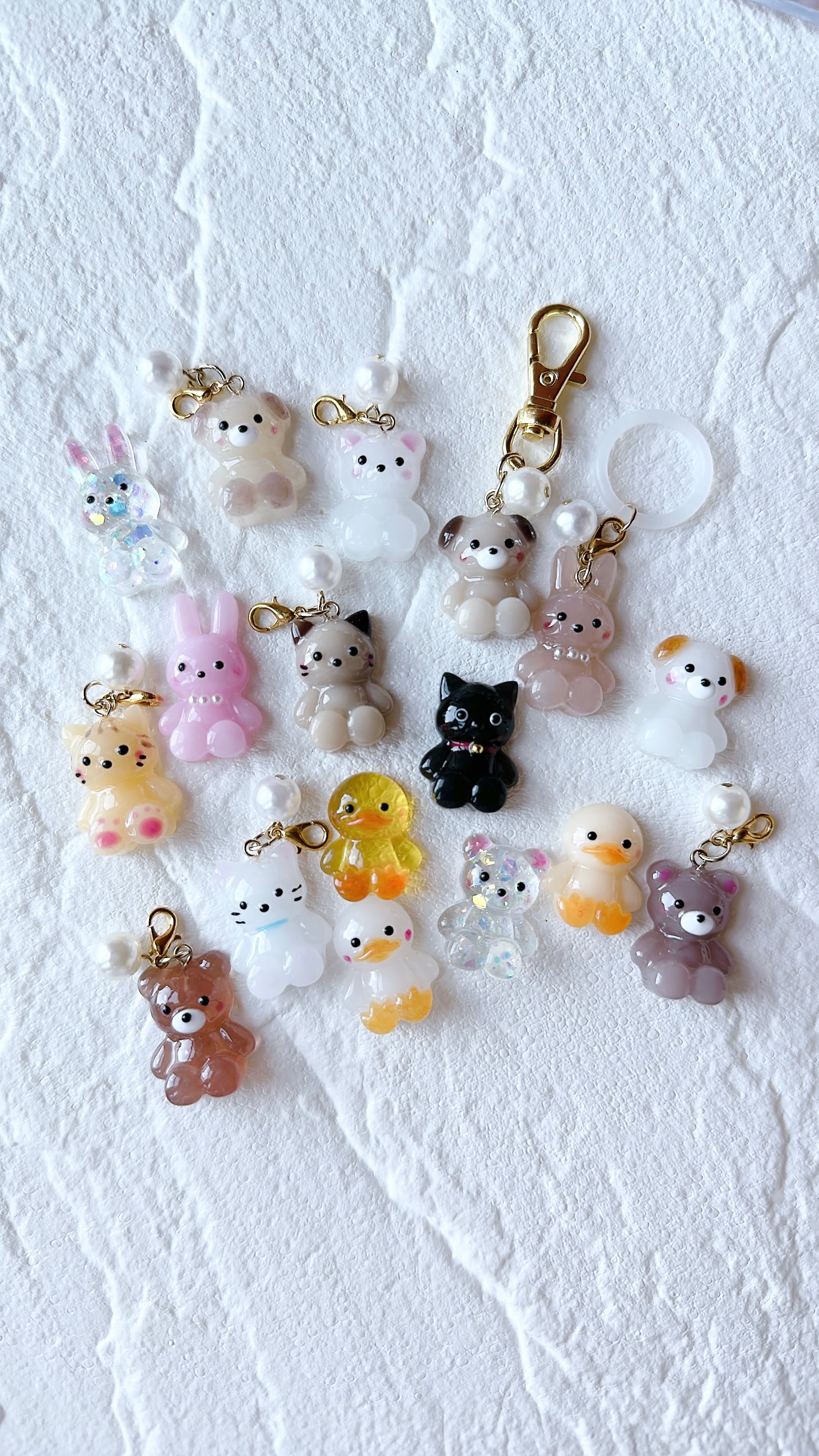 可愛い小さなうさちゃんのチャームですʕ•ᴥ•ʔ ぽわんとした表情が、なんとも可愛い子達が揃いました♡ うさぎらしいカラーの子から、キラキラの子まで お好みはどの子ですか? うさぎアイテムには癒しや幸せをもたらすパワーがあると言われています(*˘︶˘*).。.:*♡ 当初は、ポーチなどに付けられる小さなチャーム、又はアンブレラマーカーとしての販売でしたが お客様の声から、この度キーホルダーを追加してのオンライン販売となりました(⑉>ᴗ<ノノ゙ チャーム、アンブレラマーカー、キーホルダー、お好きな金具でのご購入が可能です(*^^*) アンブレラマーカーは、ペットボトルマーカーとしてもご使用頂けます! お出かけの時はもちろん、おうちの冷蔵庫でもご家族と間違わないように印をつけられますよ❣️ ※うさちゃんやパールだけを引っ張らないで下さい 破損の原因となります ※キラキラうさちゃんには、この後金具を刺しパールが一粒着きます ※備考欄にご希望の金具をご記入ください! 記入がない場合は、アンブレラマーカーでの発送となります うさぎの大きさ : 約2.8cm