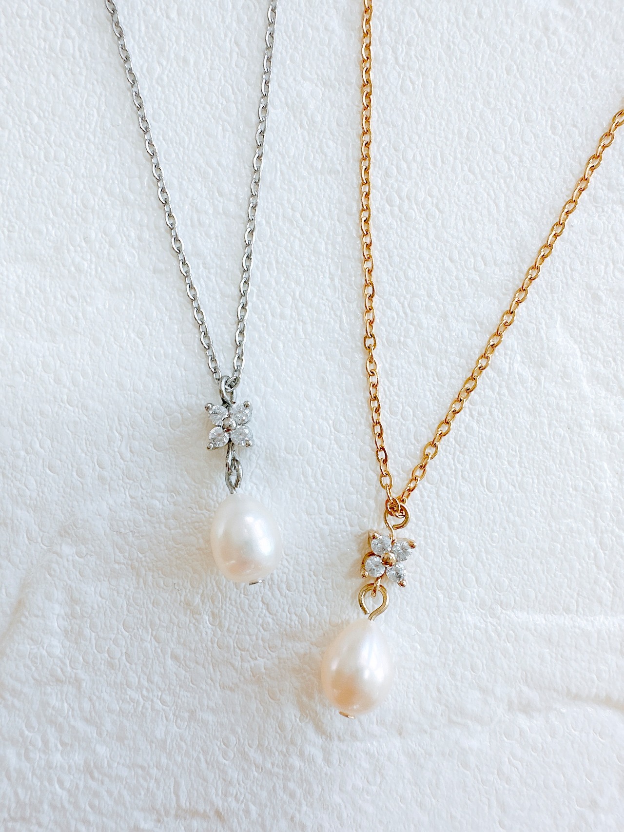 1粒の淡水パールが品よく輝き、胸元を華やか彩ます。